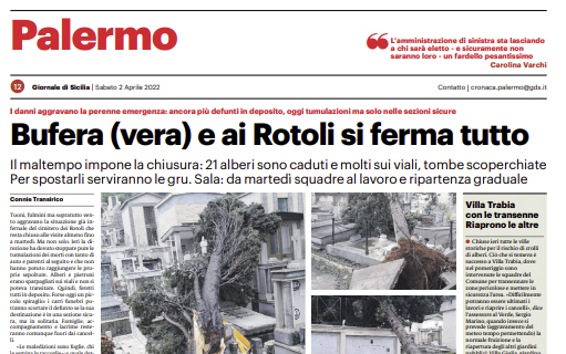 Gds: “Palermo. Bufera (vera) e ai Rotoli si ferma tutto”