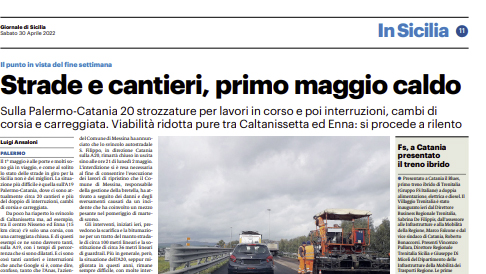 Gds: “Palermo. Strade e cantieri, primo maggio caldo”