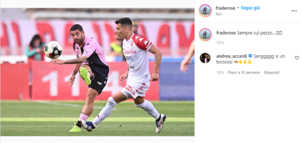 Bari-Palermo, Colonnata elogia la squadra di Baldini sui social: “Ragazzi straordinari guidati da un tecnico di talento” (FOTO)