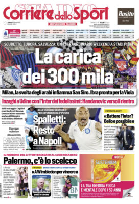Prima pagina Corriere dello Sport: “Palermo, c’è lo Sceicco”