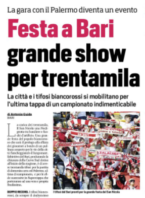 L'edizione odierna de "La Repubblica" si sofferma su Bari-Palermo e la vendita dei biglietti. Oltre 12mila i biglietti venduti sinora...
