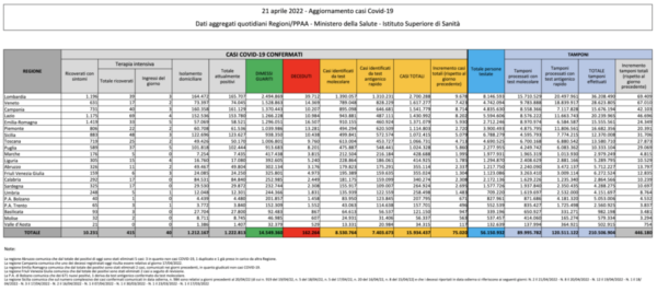 Le persone che hanno contratto il virus in Italia dall’inizio dell’epidemia sono 15.934.437. Di queste 162.264 sono morte, mentre 14.549.360 sono guarite o sono state dimesse. L'ultimo...