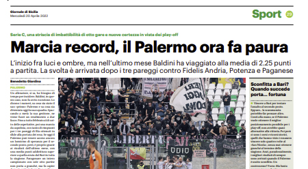 L'edizione odierna de "Il Giornale di Sicilia" si sofferma sulla marcia del Palermo. Un allenatore, si sa, ha bisogno di...