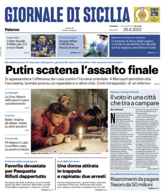 Prima pagina Giornale di Sicilia: “Putin scatena l’assalto finale. Favorita devastata per Pasquetta. Rifiuti dappertutto”