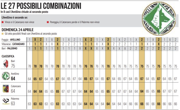 L'edizione odierna de "Il Mattino" di Avellino si sofferma su tutte le possibili combinazioni per la lotta al secondo posto...