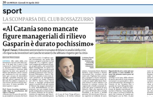L'edizione odierna de "La Sicilia" ha intervistato il professor Rosario Faraci, docente universitario, ordinario di Economia e Gestione delle imprese,...