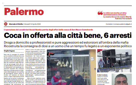 L'edizione odierna de "Il Giornale di Sicilia" si sofferma su 6 arresti a Palermo per droga. Non solo la consegna...