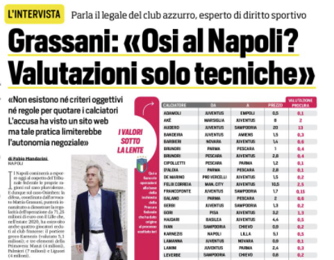 L'edizione odierna de "Il Corriere dello Sport" si sofferma sul caso Plusvalenze attraverso le parole dell'avvocato Grassani. Il Napoli comincerà...