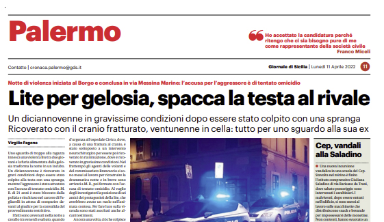L'edizione odierna de "Il Giornale di Sicilia" si sofferma sulla lite per gelosia avvenuta ieri a Palermo. Uno sguardo di...