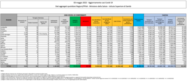 Le persone che hanno contratto il virus in Italia dall’inizio dell’epidemia sono 16.586.268. Di queste 163.889 sono morte, mentre 15.222.419...