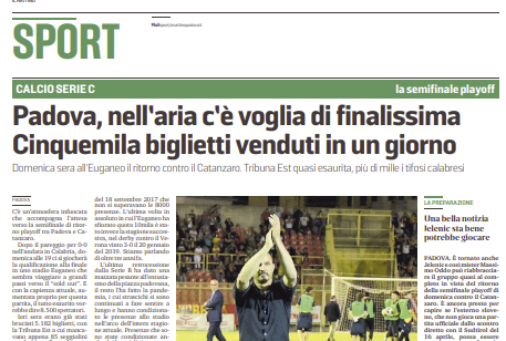 L'edizione odierna de "Il Mattino" si sofferma sul Padova e sulla gara tanto attesa, quella di domani contro il Catanzaro....