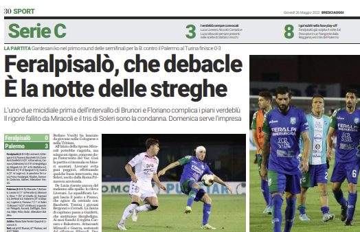 L'edizione odierna di "Brescia Oggi" si sofferma sulla sconfitta della Feralpisalò contro il Palermo e con le parole nel post...