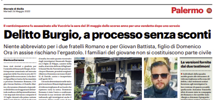 L'edizione odierna de "Il Giornale di Sicilia" si sofferma sul delitto Burgio a Palermo. Sono stati rinviati a giudizio per...