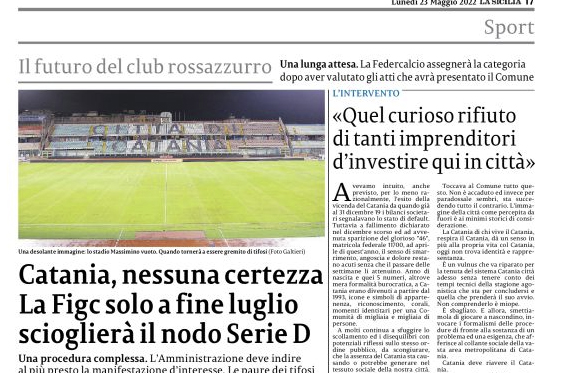 L'edizione odierna de "La Sicilia" si sofferma sul futuro del Catania riportando le parole di Coramusi, un esponente della Figc....