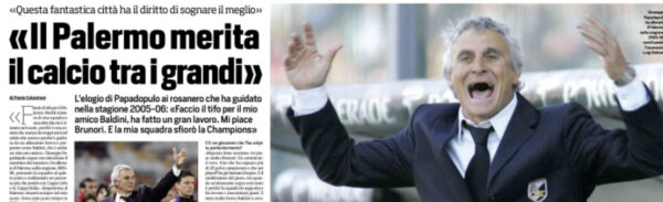 L'edizione odierna de "Il Corriere dello Sport" riporta un'intervista all'ex rosanero Giuseppe Papadopulo il quale parla del Palermo e del...