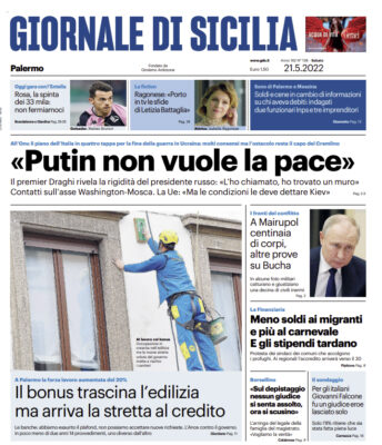 L'edizione odierna de "Il Giornale di Sicilia" si sofferma su vari temi in prima pagina. «Putin non vuole la pace»....