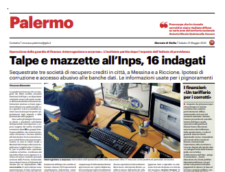 L'edizione odierna de "Il Giornale di Sicilia" si sofferma sui 16 indagati all'Inps. La squadra per braccare chi era inseguito...