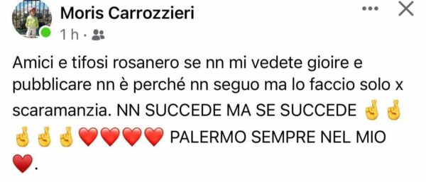 Attraverso il proprio profilo Facebook l'ex rosanero Moris Carrozzieri si è espresso in merito al Palermo ai playoff in riferimenti...