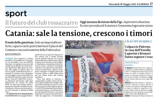 L'edizione odierna de "La Sicilia" si sofferma sul Catania e l'attesa di un titolo sportivo da parte della Figc. Lo...