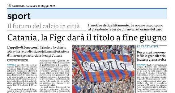 L'edizione odierna de "La Sicilia" si sofferma sul Catania in attesa del titolo sportivo in serie D da parte della...