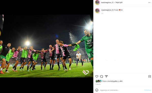 Attraverso il proprio profilo Instagram Maxime Giron festeggia la finale conquistata dopo la vittoria contro la Feralpisalò con il seguente...