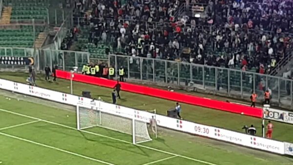 Durante il secondo tempo di Palermo-Triestina il gioco si è fermato per qualche istante. Uno dei cancelli della curva sud...