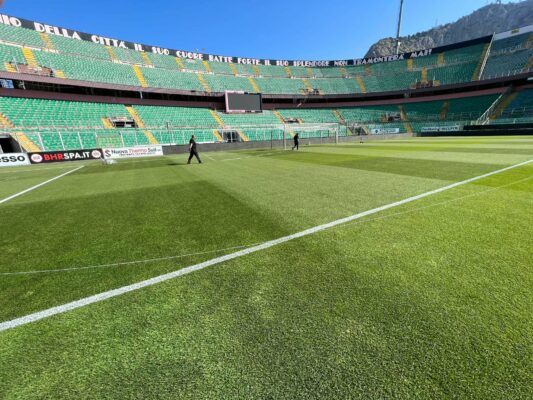 Il terreno di gioco del Barbera si fa bello in vista della sfida di questa sera tra Palermo e Triestina....