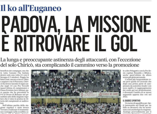 L'edizione odierna de "Il Gazzettino" si sofferma sulla sconfitta del Padova contro il Palermo, in attesa del ritorno. Se non...