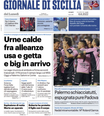 L'edizione odierna de "Il Giornale di Sicilia" si sofferma su vari temi in prima pagina. La Lega rinuncia al simbolo...