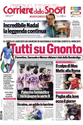 L'edizione odierna de "Il Corriere dello Sport" in prima pagina scrive "Palermo fantastico. Ha in pugno la serie B".