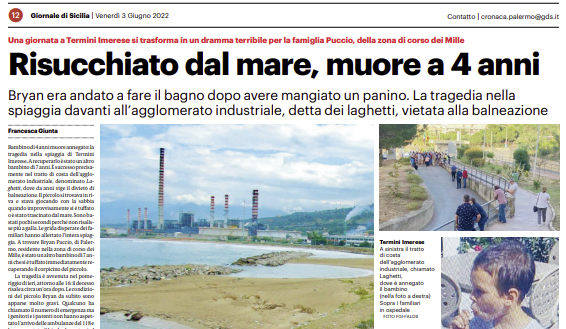 L'edizione odierna de "Il Giornale di Sicilia" si sofferma sulla tragedia consumata a Termini Imerese. Bambino di 4 anni muore...