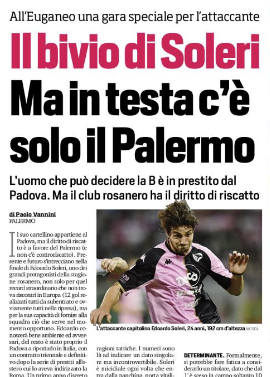 L'edizione odierna de "Il Corriere dello Sport" si sofferma sull'uomo che potrebbe essere decisivo per il Palermo, Edoardo Soleri. Il...