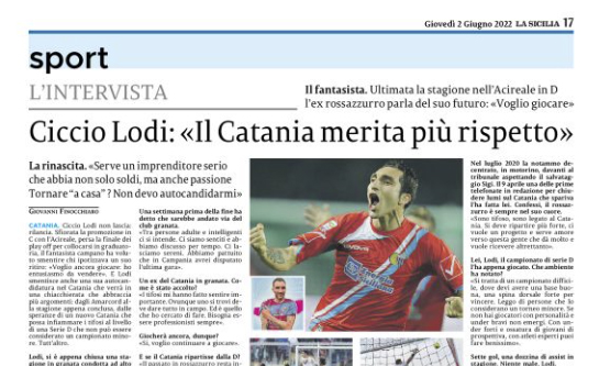 L'edizione odierna de "La Sicilia" ha riportato un'intervista all'ex Catania Francesco Lodi il quale ribadisce il suo addio all'Acireale e...