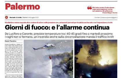 L'edizione odierna de "Il Giornale di Sicilia" si sofferma sull'emergenza caldo a Palermo. Fascia di preallerta e allarme da terzo...