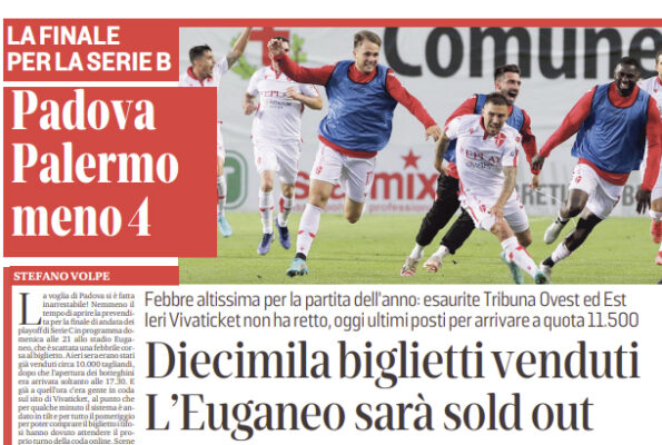 L'ediziona odierna de "Il Mattino" si sofferma sulla gara tra Padova e Palermo e sull'Euganeo sold-out. La voglia di Padova...