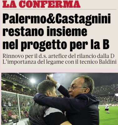 L'edizione odierna de "La Gazzetta dello Sport" si sofferma sulla conferma a Palermo di Renzo Castagnini. Il cambio di proprietà...