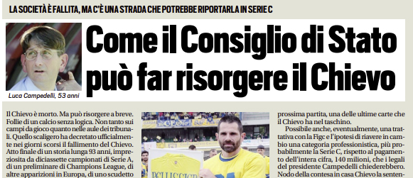 L'edizione odierna di Tuttosport si sofferma sulla situazione paradossale del Chievo ormai morto ma pronto a risorgere. Il Chievo è...
