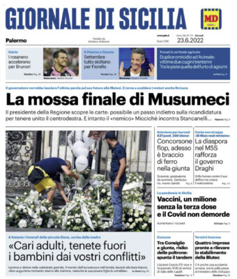 L'edizione odierna de "Il Giornale di Sicilia" si sofferma su vari temi in prima pagina, su tutti su Nello Musumeci.