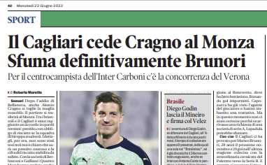 L'edizione odierna de "La Nuova Sardegna" si sofferma sul Cagliari e la trattativa per Brunori, destinata a non andare a...