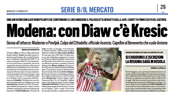 L'edizione odierna di Tuttosport si sofferma sulle trattative del giorno in serie B. Modena-Diaw, ci siamo. Filtra ottimismo fra gli...