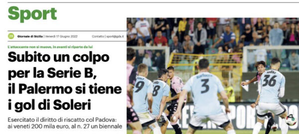 L'edizione odierna de "Il Giornale di Sicilia" si sofferma sul riscatto di Soleri da parte del Palermo. Soleri resta al...