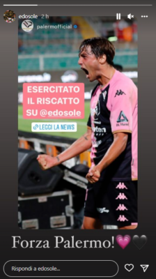 Edoardo Soleri è a tutti gli effetti un giocatore del Palermo. I rosanero infatti hanno esercitato il diritto di riscatto...