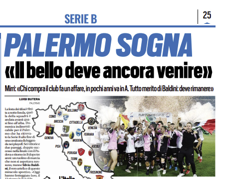 L'edizione odierna di Tuttosport si sofferma sul sogno Palermo e sul futuro della società. La festa dei tifosi è finita...