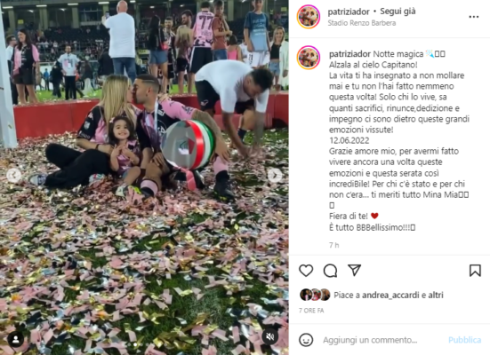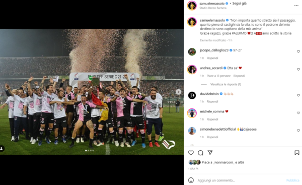 Anche la dolce metà di Samuele Massolo con un post su Instagram festeggia la promozione dei rosanero: Visualizza questo...
