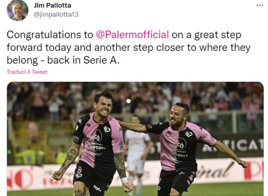 Anche James Pallotta si complimenta con il Palermo per la promozione in Serie B. L'imprenditore di Boston, ex presidente della...