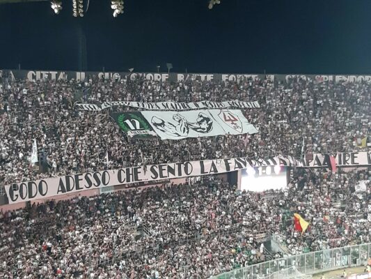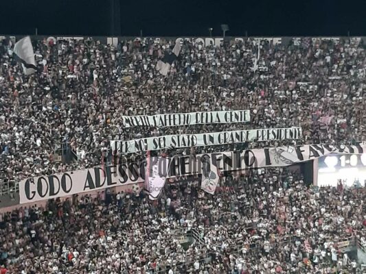 Durante il secondo tempo di Palermo-Padova la Curva Nord 12 ha esibito uno striscione omaggia il gemellaggio con i tifosi...
