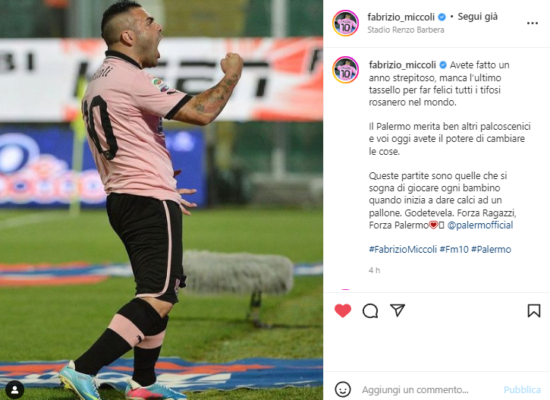 Attraverso il proprio profilo Instagram l'ex capitano del Palermo Fabrizio Miccoli ha caricato così i rosanero in vista della finale...