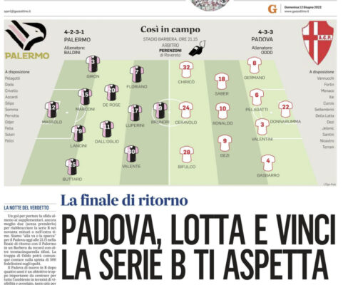 L'edizione odierna de "Il Gazzettino" si sofferma sulla finale di questa sera tra Palermo e Padova, incitando i biancoscudati a...