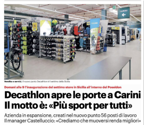 L'edizione odierna de "Il Giornale di Sicilia" si sofferma sull'apertura di Decathlon a Palermo. La missione delineata è chiara: diventare...