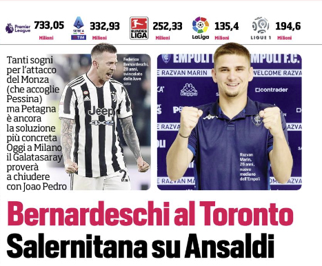 Corriere dello Sport: “Benevento, stretta per Pozzo. Pisa su Saric. Tutte le trattative del giorno in serie B”